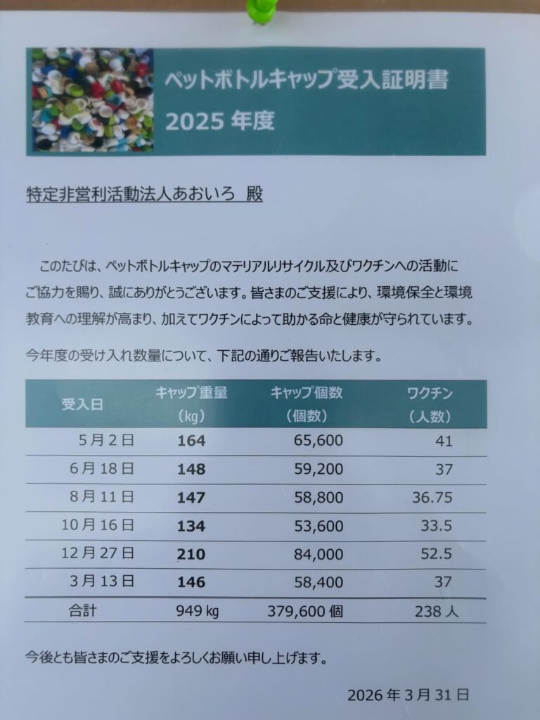 協力して下さる皆様がゴミのキャップを洗ってリサイクルで回収BOX迄持って来て頂き助かりました。